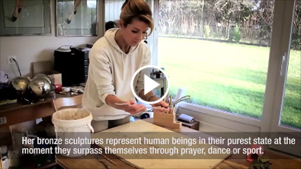 Francesca Jones, Rhythmic Gymnast, at Heathrow T5 with sculptor, Eleanor Cardozo