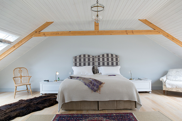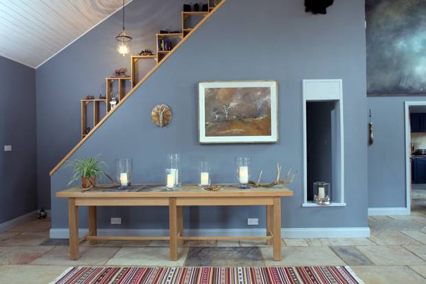She goes on to explain her method: "I don't use brushes, I paint with my hands, and I meditate before I paint." Gemma's painting led her back more and more to Kerry, and, some years ago, on one of her trips back, she happened on the house of her dreams, literally. She had driven out to Caragh Lake with her friend Peig, and drove up the mountain. "We turned a bend and saw this house, and I said to Peig, 'That's my house'," Gemma recalls. "I went back to England, and later in the week, Peig called to see the owner, but he said, 'It's not on the market'. Eighteen months later, I was idling on the internet and saw it, 'My god, it's for sale'. That was four years ago last April." When Gemma bought the house - a stone building, with massive expanses of glass, to take full advantage of the views of the surrounding lakes and mountains - it was a shell, and she decided to keep it fairly simple. There was no second floor at the time, and she opted not to add rooms over the main living space - which incorporates the kitchen, the dining area, and the living room - instead, keeping that area double height, with exposed beams. Off it, is a music room at one end, and two bedrooms and a utility area at the other end. She added an upstairs bedroom and a stairs to access it, and then set about furnishing the whole house in a very particular way. "Skellig Rock had a big influence on the way I looked at it. Dwellings exist to protect us from the elements, and that's what I wanted - simple protection. So I kept everything natural. When I'm painting, I haven't a clue, one stroke leads to another, and it was the same with the house. I had a lovely builder and it all evolved; it was so easy, so stress-free," she notes. The builder put in natural oak beams, panelling and units, and Indian sandstone on the floor. Gemma then put lots of sheepskins everywhere. Even the curtains are natural. "At the beginning, I had thought, 'no curtains', but I realised I'd need them for warmth.