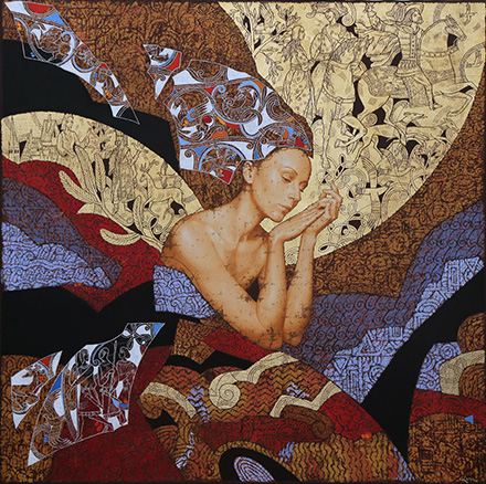 KAMU SERGEY & OLGA Sergey is Ukrainian and Olga is Russian, born in Moscow. They work together under the pseudonym KAMU for more than 15 years. Sergey was born in the city of Kharkov in 1959 , Ukraine, in the artist’s family. From 1974 to 78 he studied at the Art school, from 1978 to 1983 - at the Academy of Art, Kharkov, Ukraine. From 1988 he is the Member of the Artists Union of Ukraine. Olga and Sergey are the Members of the Artists Union of France. They live near Paris. During his studies, Sergey discovered that he is colour-blind, he excelled in drawing, engraving and etching during this period and built a successful career in drawing. His collaboration with Olga consists today of working together on every piece of art. Sergey makes preparative drawings in black and white, he draws the characters, subjects on gold leafs and adds engravings. Olga chooses and works with colours and also draws faces.purchase (pdf, password protected) The purchase document contains the images of the available artworks with their prices. It is password protected. To obtain the password please contact us. |