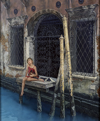 VADIM MARKEVICH Vadim Markevich was born in 1969 in Riga, Latvia. He graduated from the Lyceum of Arts and Restoration in St. Petersburg, and has exhibited since 1994 in the State Museum of Modern Arts, Minsk. He went on to study at the Royal College in London in 1999, where he received an expert assessment of his work by Sotheby's. The artist describes his work as neoclassical; a return to the more traditional style of painting. In recent years this painstakingly detailed technique has become rare, limited to highly skilled artists such as Fedotov. Markevich rejects the idea that his paintings are surrealist, considering instead that each contains a precisely formatted rational and philosophical grain. This is a talented artist who presents his vision through our perception of beauty- encouraging us to listen to the ideas behind the visual, inviting a more personal response.