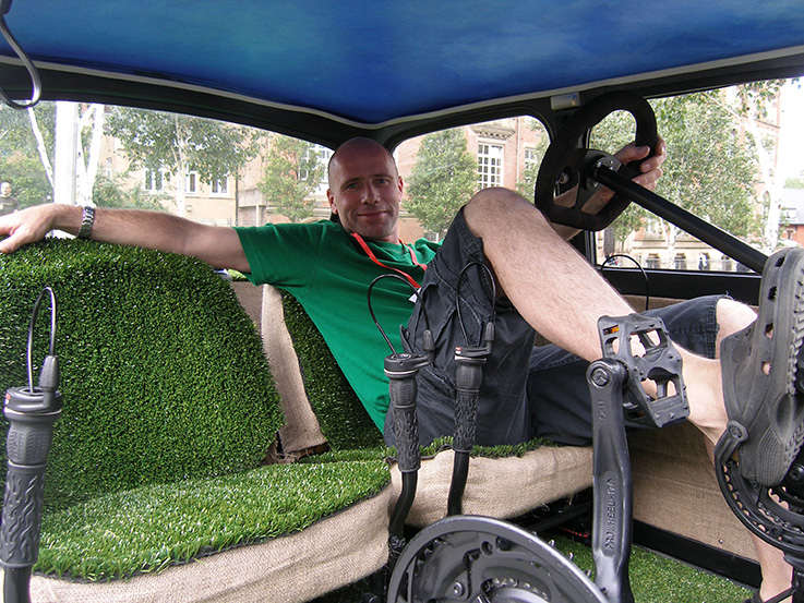 Jamie turned this vehicle into a moving artwork for the UK's first Art Car Parade in 2007. It was awarded the top prize for the most environmentally friendly car. He converted an old East German Trabant, famous for being the most polluting car ever, into a pedal-powered vehicle to create the least polluting car ever. In the 50th anniversary year of the Trabant, the intention was to highlight the problems facing us with increasing vehicle numbers. Using humour to attract attention to the issue is typical of Jamie’s methods to get the public’s attention without beating them up with a message. With this piece he wants them to consider the impact of cars on our environment, our health and our future.