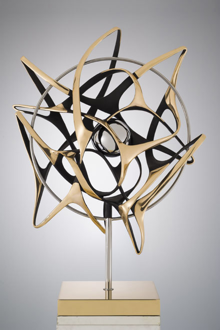 GIANFRANCO MEGGIATOBorn in Venice in 1963, Gianfranco Meggiato studied sculpture at the Instituto Statale d’Arte. As a young artist, he first exhibited work in 1979 and 1984 as part of two group exhibitions at the Galleria Comunale Bevilacqua La Masa in St Mark’s Square. Since 1998, Meggiato continues to build an impressive list of exhibitions, both in Italy and abroad. Respected in the European art scene, the artist has also gained worldwide recognition in China, Russia and the USA.Influenced directly by his homeland, the fluid lines and reflective surfaces of the sculptures carry Venetian in their bronzed bones. Using the ’lost wax’ method, the artist creates sculpture that is preoccupied with void rather than surface. The end effect is of energy bristling in shimmering clouds, a sphere freeze-framed as it breaks through a window or a comet blazing through the atmosphere. His work promotes a contemplative approach to life, asking us to listen to the still small voice in the centre of the storm.