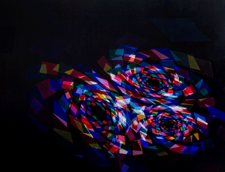 REBECCA PARTRIDGE "When I was very young I had synaesthetic dreams. I dreamt of white spaces in which there were these simple, bright geometric forms moving round a centre point that dissolved into a dark chaos…… Apparently it’s very common in synaesthetics to have this alphabet of forms and patterns, vortexes and spirals, particularly in early childhood. Now, I find them everywhere…… At one end of it is the bigger picture, the macro … dealing with huge, vast spaces and evoking a sense of awe and fear that is thought of as ‘sublime’. Then there is the micro, the point of origin from which this vastness has expanded, which is represented in the ordered precise geometry of Indian mandalas. They may appear very different, but actually they’re dealing with the same thing. They have a connection, a sense of continuum...." |