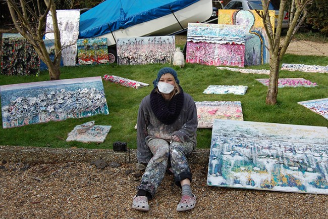 When did you first discover a talent and passion for painting? My earliest memories in life are of me drawing and painting. I can’t remember a time when I wasn’t collecting things and discovering new textures. I had books full of things I had found. I suppose all children do that to express themselves but I never stopped. My mother put a portfolio together when I was 4 and I have been updating it ever since. My uncle, aunt and cousin dedicated their life to making art. They attended Slade and St Martins. I was surrounded by people with great imaginations who encouraged me and inspired me. I was extremely lucky. When I was 6 I remember scratching chalk to collect its dust. I must have gone through a lot of chalk because I remember a massive pile. I thought the dust was beautiful. I find myself in the studio to this day doing similar things. Has dyslexia been a help or a hinderance to your artistic practice? I found Maths and English really difficult at school and Art was where I felt proud and felt I was accomplishing things. It is magical. And has always been the most natural thing to do. When I was 16 we had a GCSE art exhibition at school and a woman cried when she saw my painting (hopefully it was because she liked it!). I remember it well. The painting was called ‘Rebirth of the Mind’ and was about breaking through the hard shell you build to protect yourself. I had always wanted to be an artist for myself, that day I realised the joy and completion I felt from making can have an effect on other people, like other artists paintings have had on me. This was a big deal for me. During my imitation phase (early teens) I discovered the Impressionist, Surrealist and Expressionist artists. In particular Frida Khalo, Salvador Dalí and Van Gogh. The paintings ability to hold someone’s raw emotions was electrifying. For that emotion to then break its boundaries and reach the viewer was remarkable. When I was young and still to this day paintings become my friends. I would stare at them and not feel alone. Great paintings make me feel safe. Looking at a Van Gogh was like watching an incredible film I looked at it for hours and these were just photographs of the real thing. I grew up a lot through paintings they were like lessons and experiences. Your parents are both successful artists, although in completely different fields (composer and writer). How do you think this has influenced you in the way you create? It’s definitely made me the person I am. I grew up in music studios. Members of Pink Floyd and Roxy Music played at my 6th birthday party. Music is very important to me I hear when I paint. It is my way of making music. And when I hear music I see images. I grew up with the idea that being a musician, artist, and writer wasn’t a dream, it was a reality. I am very grateful for that. Although it makes for an unstable life it definitely makes for a fulfilling one. Because of this it was never a question, it was a fact, I am a painter. The danger of this has been throughout my life when I have doubted myself, which is common for artists, I have doubted my complete self. That’s a dangerous place to be in. I think I can safely say art is my life. And that is the way it should be.