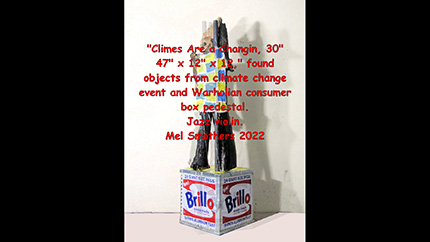 "I'm thinking mass consumerism with the Brillo Box and its effect on global climate change with the found objects," Ariel Zaccheo, Curator, March 2022.