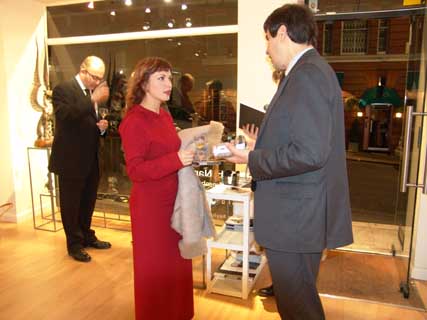 Dashi's pieces of art have already become a synonym for contemporary ethnic ritual sculpture. Fulfilled mostly in realistic manner, they are at the same time significantly hyperbolic. Perfect plasticity and exalted emotionality of his 'warriors' and 'guardians' have made their creator a classic of modern sculpture.The variety of materials Dashi works with is impressive: bronze, silver, gold, mammoth tusk, horsehair. The works 'Full Moon' and 'Raven' are a genre mixture of sculpture and tapestry and have no precedent in recent art history. In Dashi's sculpture one can find traditional images of Central Asia steppe civilization - warriors and beauties, lamas and shamans, totemic animals and mythological creatures. In 2003 Dashi was awarded the Silver Medal of the Russian Academy of Arts. The exhibition held at Tibet House in New York earlier this year gained the artist a worldwide fame. The Hay Hill Gallery is located at 11B Hay Hill, Mayfair, W1. The exhibition is open Monday to Friday 11.00 to 18.00, and Saturday from 11.00 to 17.00. Photo Report from the Reception of 16 November 2004 |