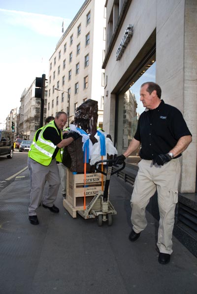 'God Moves To Mayfair'. Auguste Rodin’s ‘Hand of God’ moved to the Time + Life Building at No.1 Bruton Street, Mayfair by Lockson Shipping on 16 March 2009.