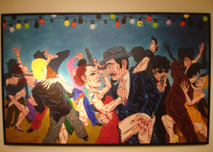 I can see why Estavillo has been called the “Pop – Brueghel” and “Tarantino of Painting”. He exposes the dark side of life in a very visually appealing way embodying a pulp-fiction sentiment that takes the image one step beyond ‘real life’ although all his characters are drawn from people he knows. I was also taken by his painting ‘Minotaur’s Sauna’ not that I’d hang it on my living room wall or anything but it did catch my attention for rather a long time…