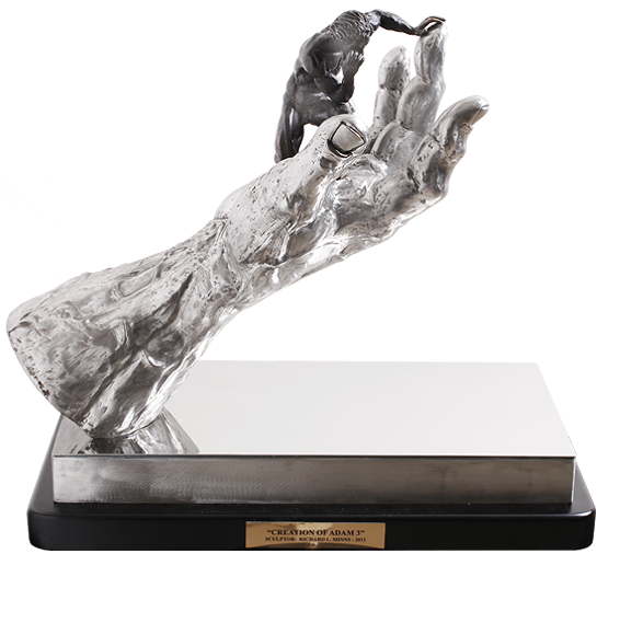 Richard’s second “Creation Of Adam II” is a large sculpture, converting Michelangelo’s Sistine Chapel Masterpiece of God Creating Adam (the famous touching fingers) into a three-dimensional bronze sculpture. It is presently on exhibit in the prestige Manhattan Tower.