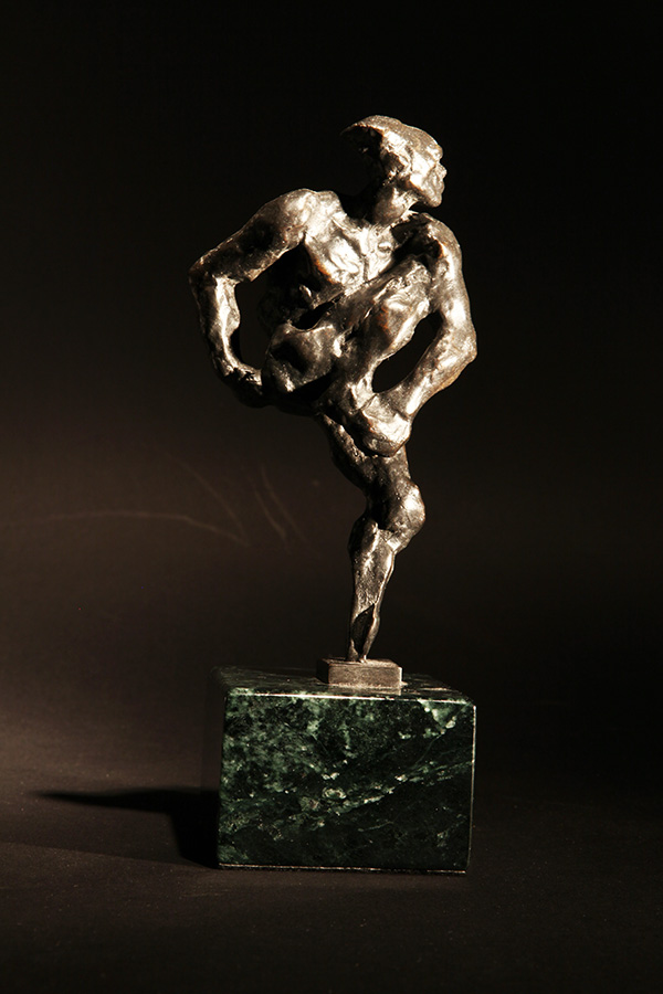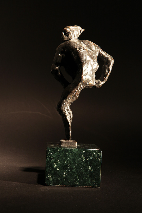 Throughout his career the sculptor worked from models or from assembling already realized motifs. For Nijinsky, by contrast, he worked from memory. He constructed the figure by pinching rolls of clay, contracting and distorting the form to capture the dancer’s explosive movement.