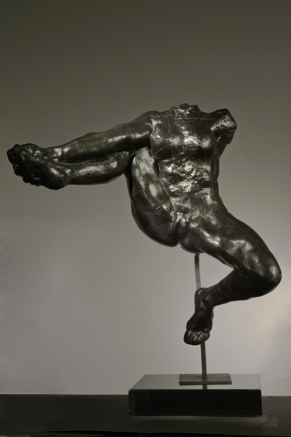 The pose developed for Iris records the new type of model Rodin preferred in the last decade of the nineteenth century. Even more than Adele in Fallen Caryatid, the model for Iris held a difficult, unique pose. Leaner and stronger than Adele, this model has the body of an athlete or acrobat.