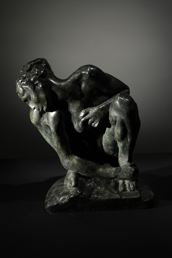 "Sculpture", said Rodin, "is an art of forms". Throughout his career Rodin sought out unique, expressive forms, which often involved distortions or unusual poses, "Woman Grabbing her Right Foot" records a spontaneous attitude struck by Adele Abruzetti, Rodin's favourite model in the early 1880's. The pose is informal, suggestive, and entirely outside the vocabulary of Rodin's academic colleagues. Included as a minor figure at the top of the right pilaster of the "Gates of Hell", the figure became a major success as an independent work, which Rodin produced in various media and sizes. Viewers have interpreted the work in many ways. Octave Mirabeau, a sophisticated collector and supporter of the artist, referred to the piece as "my frog", later critics have found "Woman Grabbing Her Right Foot" one of the artist's most audacious achievements in sculpture form. |