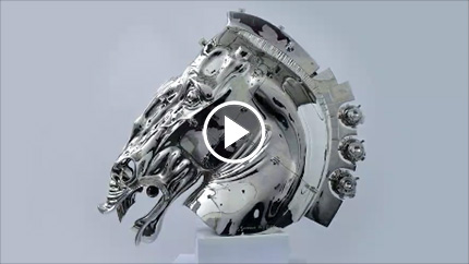 Red Horse Head Series consists of three sculptures: Red Horse Head, Black Horse Head and White Horse Head. The last one can have LED lighting inside. They are made of bronze and chrome, The size of each one is 145 x 130 x 50 cm |