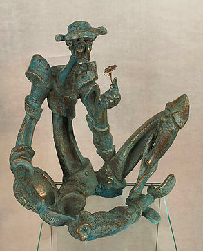 Critical outline on “Don Quixote” sculpture by Nikolai Silis: In the late 60s, Nikolai Silis began working on a new series of graphics. As a result, we got 14 pages of brilliant works dedicated to the famous hero of the Spanish writer Miguel de Cervantes, Don Quixote. The main creative goals for Silis were always works on the form, and Don Quixote felt just right for the plastic experiments. "I immediately imagined him all formed and twisted, made from thick sheets of metal" recalled the sculptor in his memoirs. (N. Silis, "Memoirs", Academic Publishing Centre "Nauka", Moscow, 2016, p.39.) Gradually, the hero of the graphic series began to acquire real outlines, first in clay, then in gypsum and finally, in his already familiar copper form. Although later, on the creative path of the sculptor, this image received many incarnations. In particular, Silis has a smaller bronze version of Don Quixote. This version was created specifically for the Moscow International Film Festival, which was later awarded to director Yuri Norshtein when he received the Tarkovsky Award for the cartoon "The Hedgehog in the Fog" in 1989. Don Quixote became the most distinguished character of the master. The image of Don Quixote, embodied by Nikolai Silis, combines monumentality with intimacy. He is largely out of the total number of his works, that usually gravitating toward generalization of forms, and yet, it is a veiled self-portrait of a master. Particular attention of Silis to the plastic interpretations in sculpture made significant changes in the world of art and included him in the lines of greatest artists of the twentieth century: Auguste Roden, Antonio Giacometti, Henry Moore, Vadim Sidur, Tony Cregg. Don Quixote became the main work of the sculptor, in which he was able to express his moral and ethical ideals, as well as the genius of the artist-creatorBiograpy: Since 1956 Nikolai Silis became a member of the Moscow Union of Artists. Since 1956 he had been taking an active part in all-Union, regional and international exhibitions, as well as in private Russian and foreign galleries. Many works of the sculptor were acquired and donated to state museums and private collections. Exhibitions: The first personal exhibition of Nikolai Silis took place at the Russian Academy of Arts in Moscow, near the metro station "Kropotkinskaya". The second - after 30 years, during «Perestroika», in 1987, in the gallery MOSKh on Vavilov Street, Moscow. The third solo exhibition was organized in 1992 in the Moscow Central House of Artists. 1994 - The Valentine Ryabov Gallery