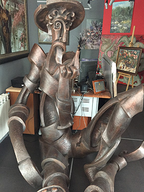 "I have a great news. The large sculpture by Nikolai Silis 'Don Quixote With A Flower' arrived to my gallery in Moscow. It is the best sample! It is the last life-time large 'Don Quixote' sculpture. It is a fourth edition of the sculpture made from the concrete model and it is the last one since the concrete model has been destroyed and there is no team which has the right and the sculptor's trust to reproduce the model. Previously only one edition of the sculpture was made with a battle shield as the sculptor conceived it. This fourth addition was also made with a battle shield." - Valentin Ryabov, gallery owner. |